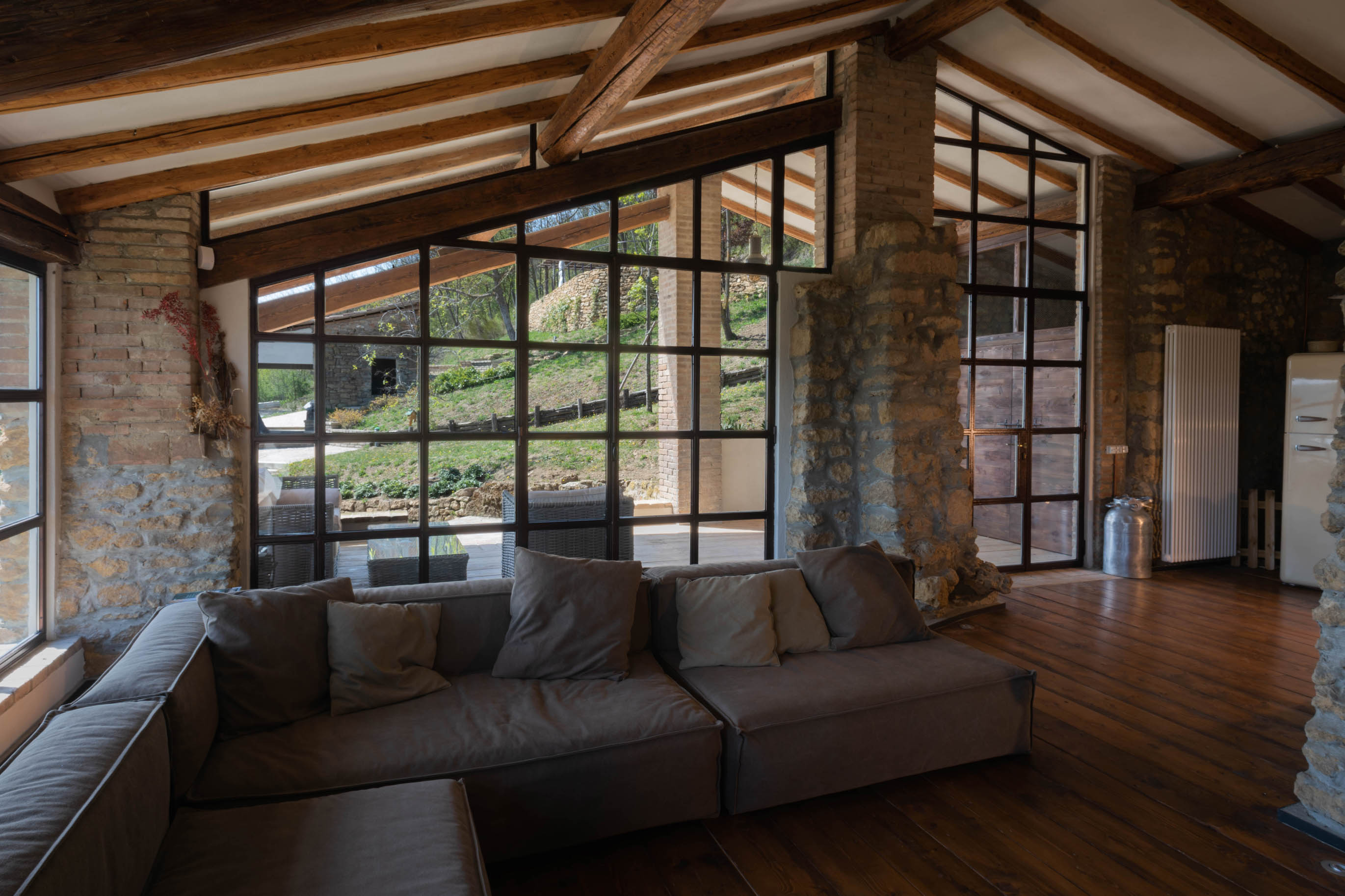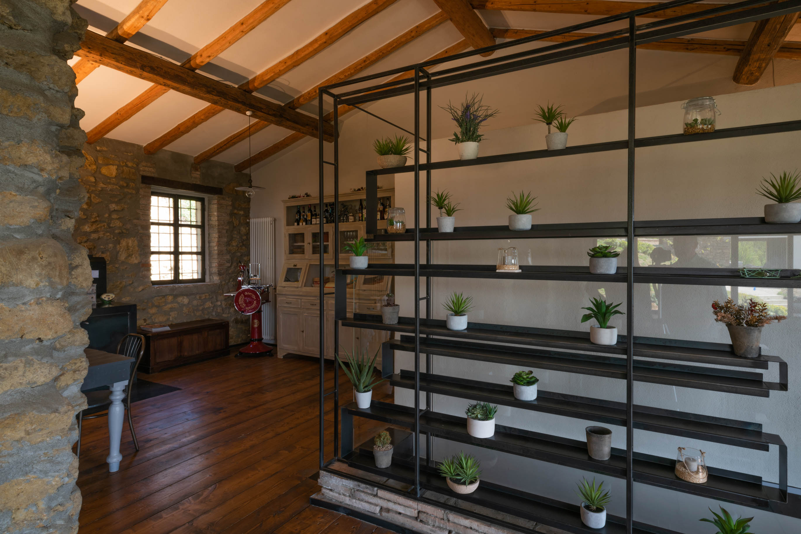 the difficult accessibility to the house was a design constraint aimed at maximizing the recovery of existing materials by reusing them with new shapes and designs. Some simple iron works of the build in furniture are the new sign of the house.